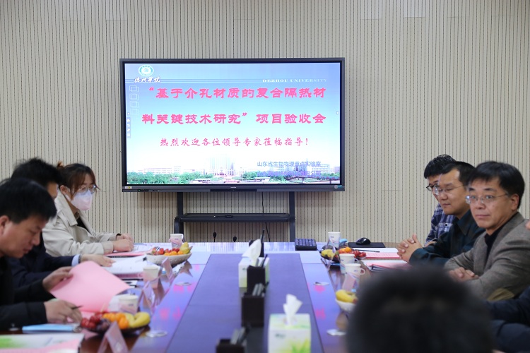 2022年4月28日,在德州學(xué)院生物物理研究院?jiǎn)⒅菢侨龢菚?huì)議室,山東奧博環(huán)??萍加邢薰疚械轮輰W(xué)院進(jìn)行的橫向科研項(xiàng)目“基于介孔材質(zhì)的復(fù)合隔熱材料關(guān)鍵技術(shù)研究”課題驗(yàn)收會(huì)議順利召開(kāi)。德州學(xué)院李永平副校長(zhǎng);武城縣科技服務(wù)中心黨組書(shū)記范忠新主任、山東奧博環(huán)??萍加邢薰究偨?jīng)理張延青高級(jí)工程師及企業(yè)技術(shù)人員等15余人參加了課題驗(yàn)收會(huì)議。